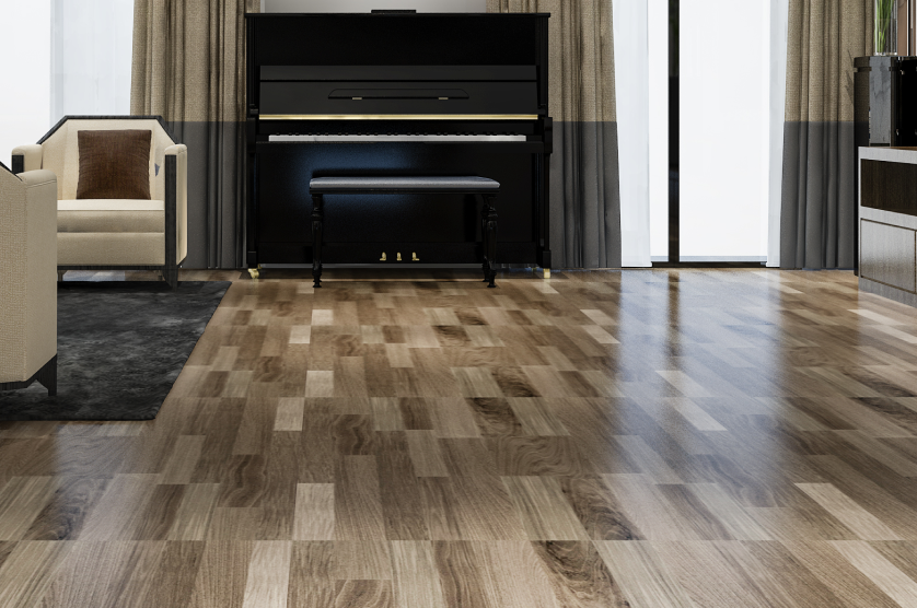 Mimics the nuances of hardwood planks with superior waterproof capabilities.